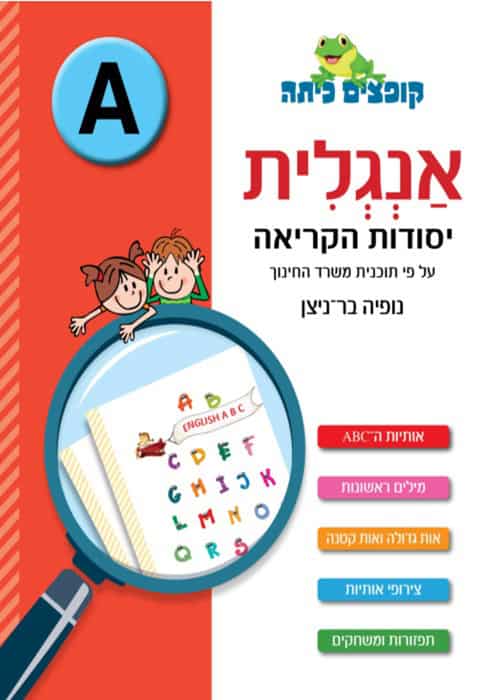 החוברת אנגלית A: יסודות הקריאה מסדרת קופצים כיתה היא חוברת לימוד, תרגול והעשרה לילדים העושים את צעדיהם הראשונים בלימוד השפה האנגלית.
