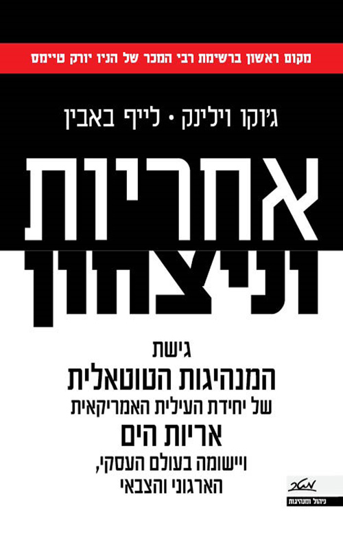 בגרסה חדשה ומעודכנת לרב המכר שסחף את אמריקה והעולם, שני קצינים מיחידת העילית "אריות הים" מדגימים כיצד עקרונות המנהיגות שהובילו אותם לניצחונות בשדות הקרב האלימים והמסוכנים ביותר בעיראק, ישימים גם בארגונים ובחברות. שדה הקרב הוא סביבה דינמית וקשוחה מאין כמותה, המלמדת בדרך הקשה שההבדל בין ניצחון לתבוסה ובין חיים למוות תלוי בראש ובראשונה במנהיגות. ג'וקו וילינק ולייף באבין, כמנהיגי יחידת המשימה "ברוזר" בצוות שלוש של "אריות הים", קיבלו משימה שלדעת רבים היתה בלתי אפשרית: לעזור לכוחות האמריקאיים בעיראק להשיב את הביטחון לעיר רמאדי – עיר אלימה ביותר שהיתה נתונה בידי כוחות המורדים. דרך חוויות גבורה ואובדן, כישלונות וניצחונות בחודשי הלחימה הקשים ברמאדי, למדו שני הקצינים שמנהיגות – בכל הרמות ובכל הדרגים – היא המרכיב החשוב ביותר הקובע אם צוותים מצליחים או נכשלים.